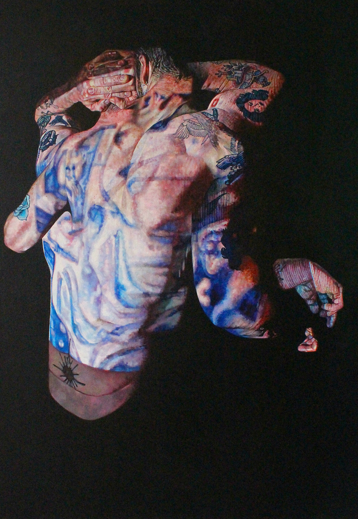 “The act of painting, like remembering, becomes sanctified not because it reveals truth, but because of the care and attention it requires. The devotional quality throughout this work is not religious, exactly, but borrows the aesthetic language of reverence: chandeliers, glowing skin, sacred gestures. Yet, this is devotion laced with humour and self-awareness, flirting with the distant cousins of kitsch and fetish. It straddles the line between tenderness and distance; vulnerability and performance…. ‘I saw you. Even if you didn’t see me back.’”