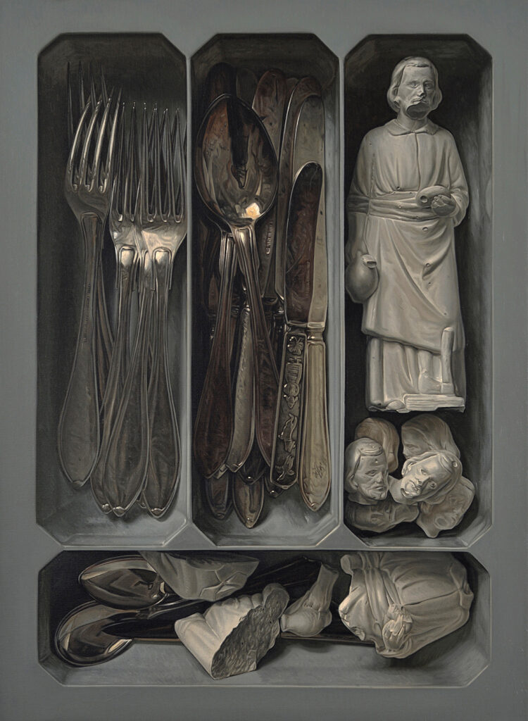 The collection incorporates personal items that offer a glimpse into Asker’s own life. For instance, many of the objects depicted are shown resting upon the grey table where the artist prepares his canvases and mixes his colours. Acting as self-portraits in a loose sense of the term, Asker’s paintings also retain a universality that resonates across individual experience as they encompass the stories the objects themselves might hold. “A Sudden Increase in Mass” is currently on display at Union Pacific in London until June 21st.