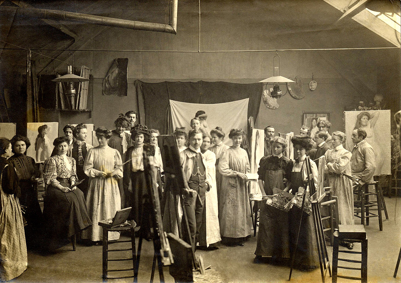 At the time, women were excluded from attending official art courses, leaving them few options beyond a private tutor or atelier. In fact, women were not able to enroll in courses at the Académie des Beaux Arts until 1896. Finding this unjust, Maria Caira– also known as Mme Vitti– decided to take matters into her own hands. She scraped together enough money to rent an empty carriage house and turned it into a school for women. The Académie Vitti was one of the few institutions not only to accept female students, but to allow women the chance to sketch nude male models from life. Art students began arriving from all over the world in no time.