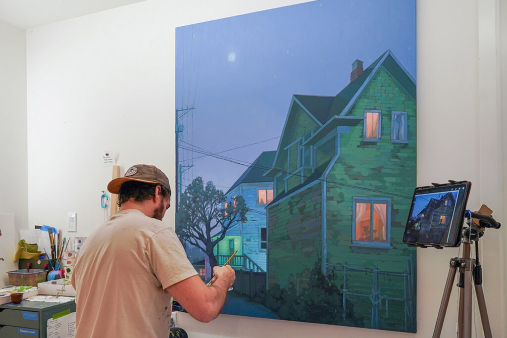 A collection of new paintings by Canadian artist Jason McCrea. McCrea’s debut show unfolds like songs on an album with each painting showcasing its own individual pallets and subject matter. His use of surreal colouring injects fantasy into reality. Combining subjects, both real and imaginary, McCrea creates space for more creative choices, trying new things and working through intuition. The result is a series that captures nuanced feelings, experiences of adventure, solitude, heartbreak and an overall excitement for life. In light of the excessive noise and uncertainty of modern life, “Afterburn” speaks to a spirit of resilience — encouraging a message of hope and inspiration to keep going.