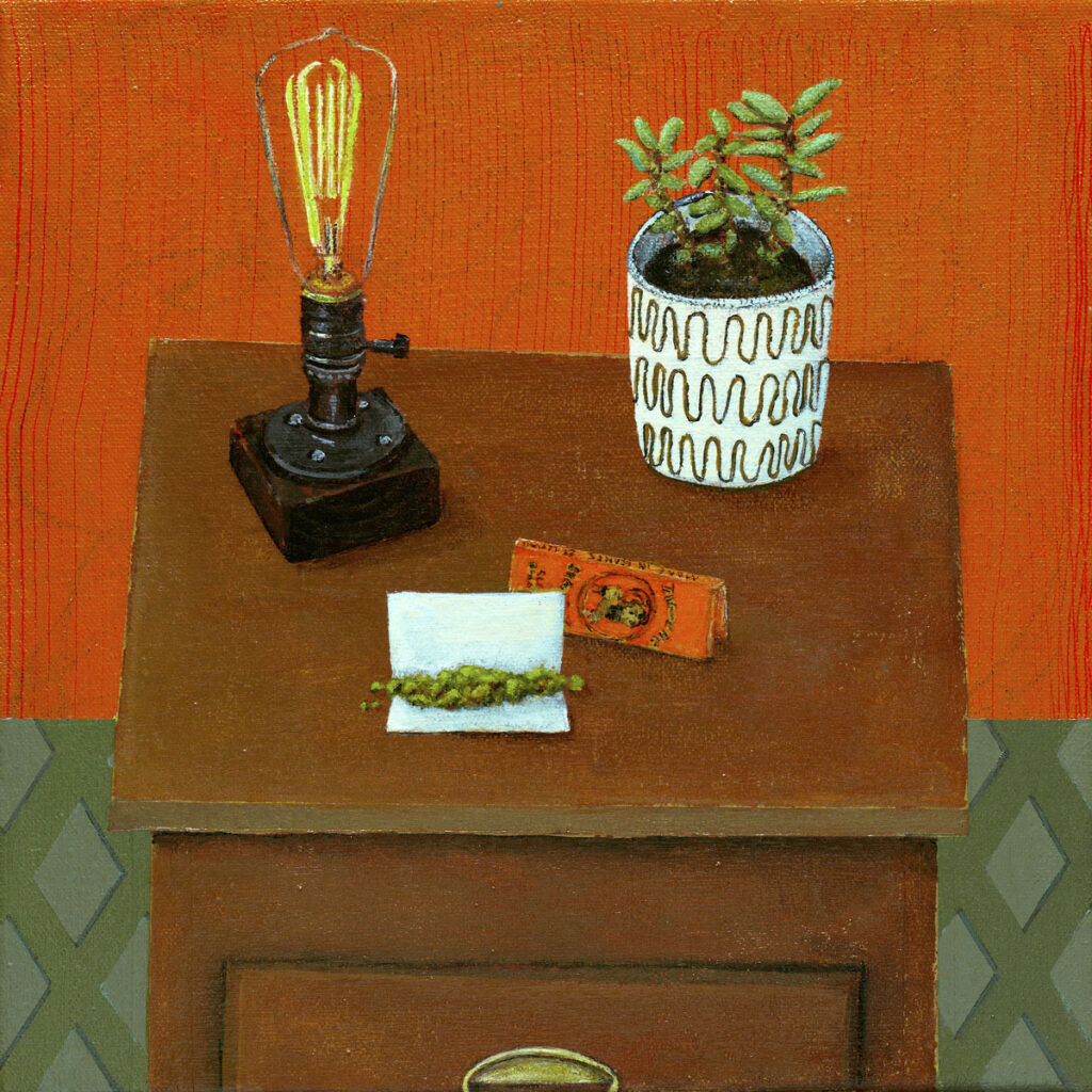 A selection of recent paintings by Austin, Texas-based artist Gabe Langholtz. Drawing inspiration from folk art and American Color Field painting, Langholtz’ paintings feature mundane cultural objects and activities rendered in his signature style, with a focus on color relations, pattern-making, form and line, with a heavy emphasis on the two-dimensional surface of the canvas.