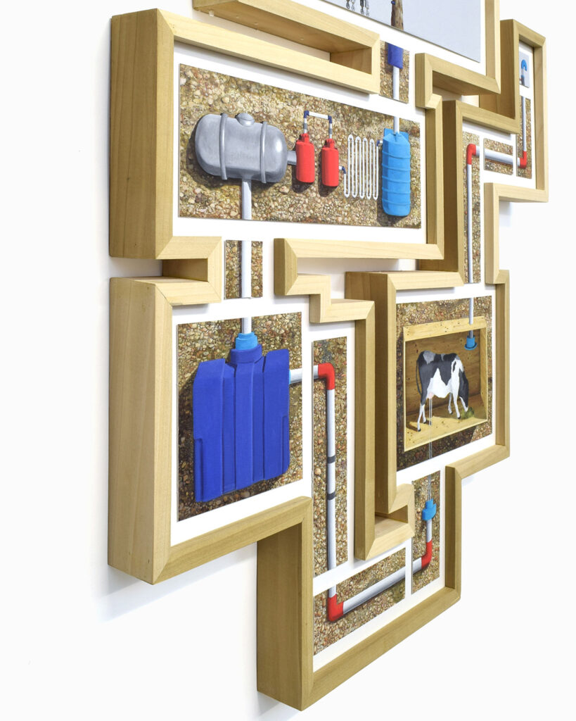 A series of paintings by artist Jazz Keillor. Currently based in Kjipuktuk/Halifax, Nova Scotia, Keillor recently graduated with an MFA from NSCAD University. Her series, “Welcome to Wildernessland,” presents an exaggerated take on the visual, spatial, and structural systems employed within contemporary sites of outdoor recreation: