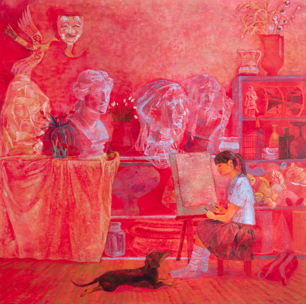 A selection of recent paintings by Japanese artist Minami Kobayashi. Born in Nagoya and currently based in London, Kobayashi studied at the Tokyo University of the Arts and School of the Art Institute, Chicago. She makes figurative oil paintings and sculptures which combine intimacy and mystery through their depictions of ordinary people, animals, and places that seem vaguely surreal and ever so slightly off-kilter.