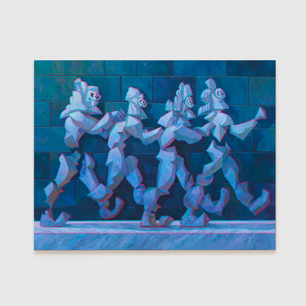 “I am interested in using art as an instrument to address difficult and nuanced conversations. My paintings often reference distorted narratives where history, fiction, reality and myth bleed into one another. In these works, I choose to offset blue and red colour channels, because painting the misalignment in these narratives is as interesting to me as depicting the narrative itself.”