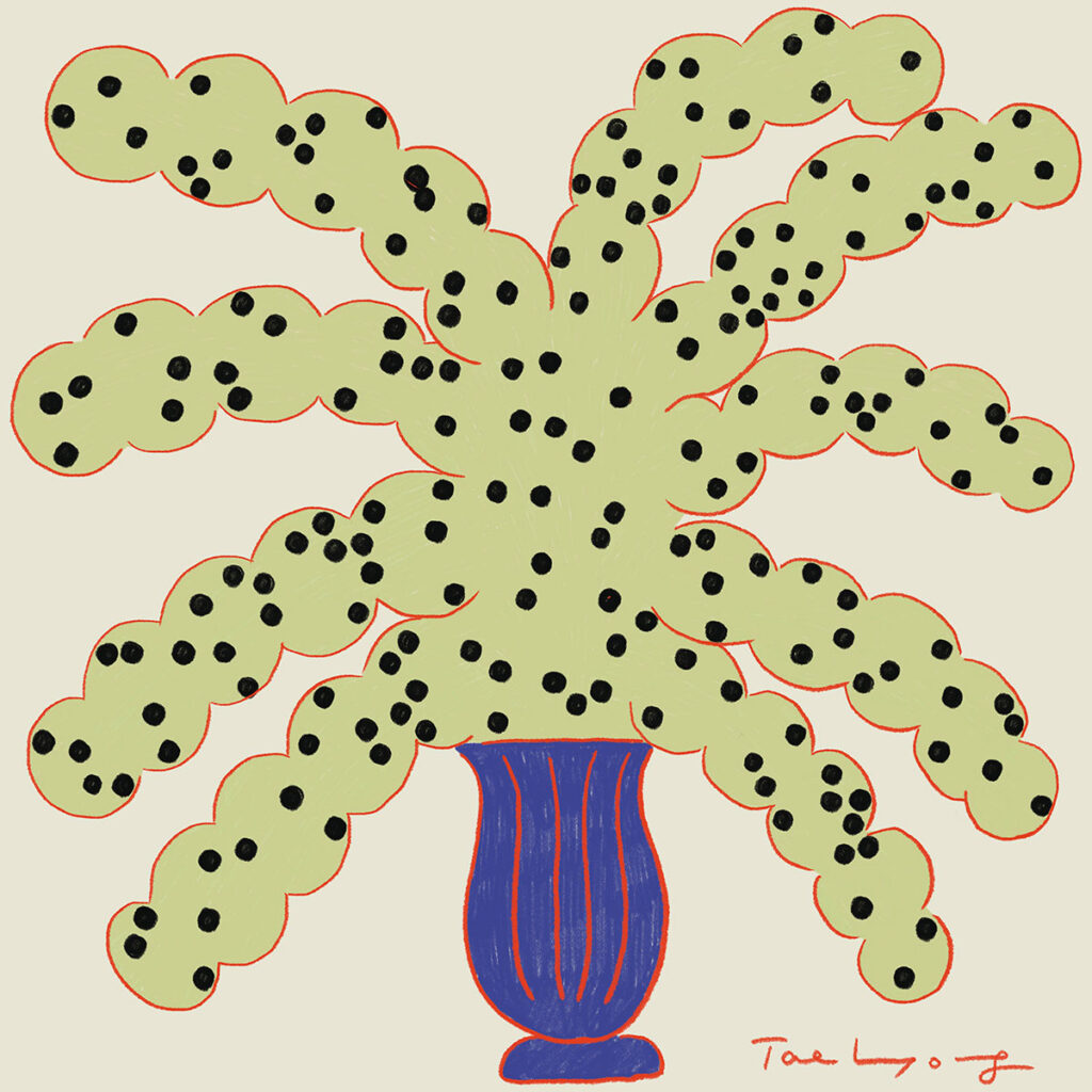 A selection of recent work by Taehyoung Jeon, an illustrator and printmaker based in South Korea. With a background in traditional printmaking techniques such as screen printing and etching, Jeon’s recent practice has included more digital drawings on her iPad. “I enjoy the time studying the plants in my apartment and seeing them grow and change everyday,” she says. “It was natural for me to express what I learnt and inspired from my plants through the artworks which are about balance, patience, tenacity, and potentiality.”