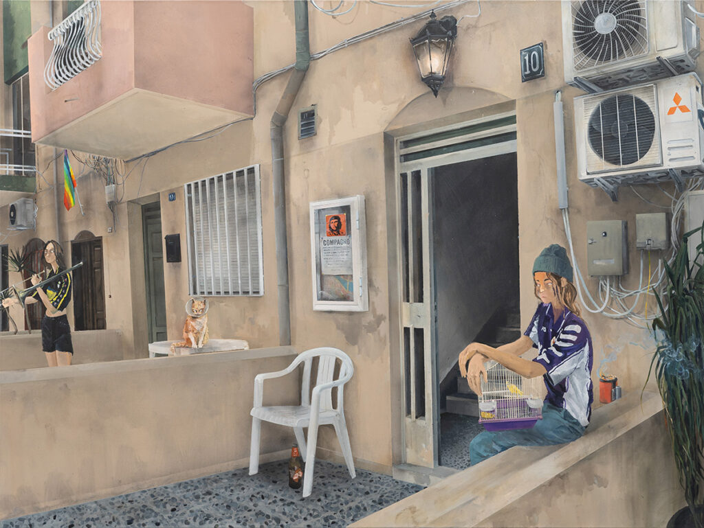 A selection of recent work by artist Tim Sandow (previously featured here). Based in Wuppertal, Germany, Sandow graduated from the Kunstakademie Düsseldorf and the Akademie der bildenden Künste Wien in 2019. Inspired by mundane scenes of everyday life, Sandow’s paintings emphasize the setting of characters caught mid-action, notably indifferent to their surroundings. Unspeakable sadness is often mixed with outrageous banalities, capturing a duality of melancholy and poetic moments of solitude and silence. In this way, Sandow captures the disproportionate nature of our modern world — the sad reality that, while experiencing times of unparalleled wealth and life expectancy, we are also more anxious and polarized than ever before. See more from Tim Sandow below!