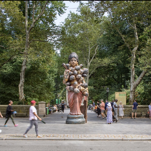 These were shown in Venice during the Biennale, were praised for the way in which they express cultural slippage and selfhood; now serve as the basis for Bharti’s monumental new work, unveiled a few days ago at the Doris C. Freedman Plaza on Central Park’s south-eastern edge.