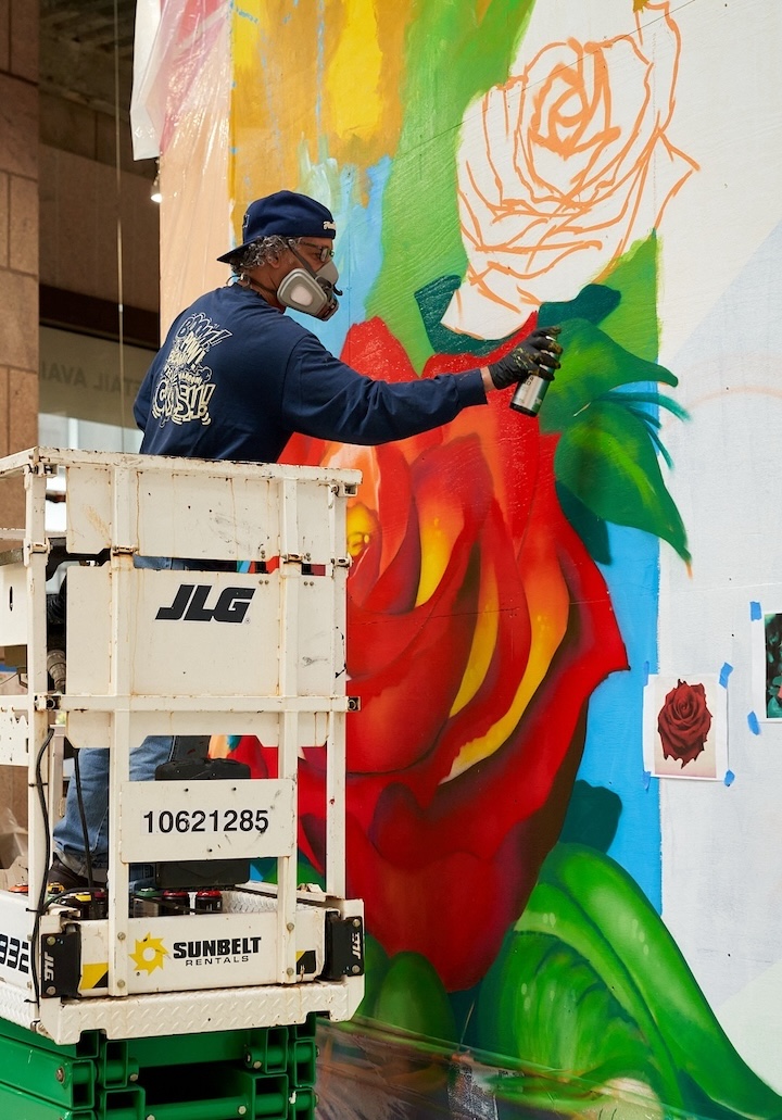The legendary artist Chris “DAZE” Ellis is currently at work on newly commissioned artworks at 550 Madison Avenue on the corner of 55th Street. The following interview with him was conducted by Street Art NYC contributor Ana Candelaria.