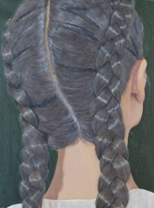 Anastasia Korsakova‘s crisp, at times emotionally distant portraits use abstraction and limited color palettes reminiscent of American painter and Frieze-favorite Alex Katz, with an added hyperrealist touch.