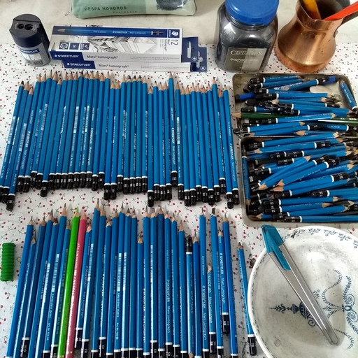 Can you describe a typical working day? My studio is in a warehouse conversion with 17 other artists. It’s walking distance from my home so on a typical day I walk to my studio at around 9 – 9:30am, and I’m there until 4pm. I never start working immediately – I like to study yesterday’s work, sharpen all my pencils, have a quick chat with one of my studio friends, then get started. Because my work is so detailed and intense in its execution, I will often take breaks to give my body a rest but also to assess what I’ve just done and where and how the image is going. I always take a break for lunch when I read some news and play Wordle and other word puzzles – I love word puzzles. Depending on how my work is progressing, each day can be fairly much the same. However when I’m not travelling so well with it, my day can change quite a bit where I’ll be in my studio tidying up, rearranging things, staring blankly at the current work in progress on my easel, scrolling endlessly through Instagram and allowing anything and everything to distract me from my work – these are the days I do not enjoy, but seem to be a necessary part of the overall process. This will last one or two days, then I’m back and everything’s ok again.