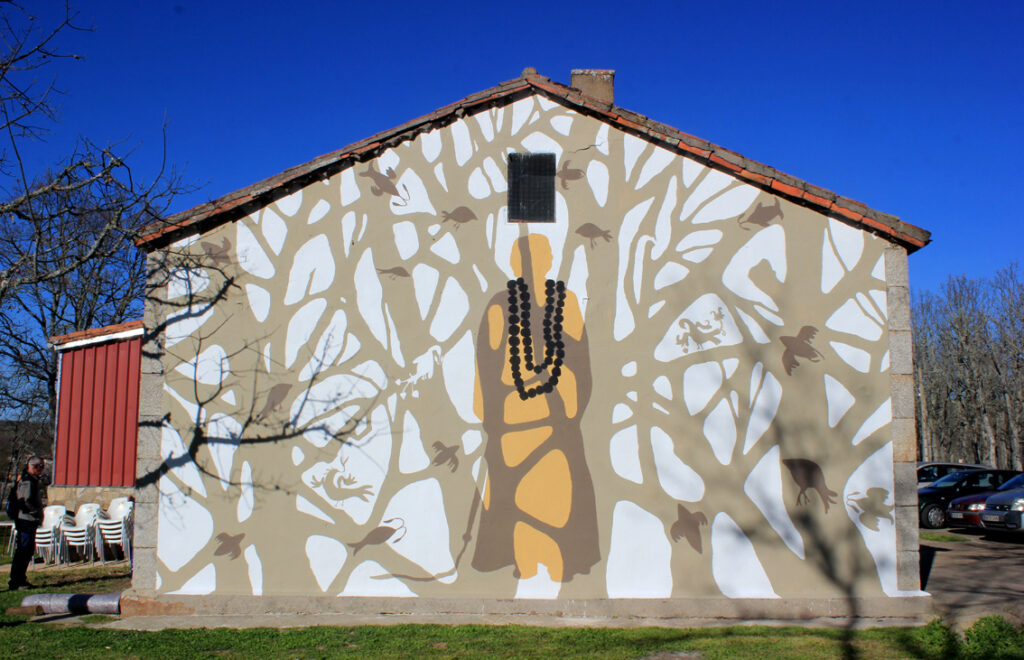 The magical and ritual character of this figure is accompanied by primitive animals and some typical embroidery motifs, which in turn feed on the popular imagination of the area. The representation of the trees in this case is added to the projection of the shadow of the oaks that surround Nava de Francia.
