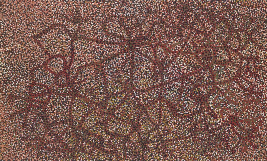 The sister-in-law of fellow artist Minnie Pwerle, Kngwarray began her artistic journey in the 1970s through batik—a fabric dyeing technique introduced by non-Indigenous art center workers. In 1977, she became a founding member of the Utopia Women’s Batik Group. The batik process—slow, layered, and detailed—allowed her to begin translating her cultural knowledge into visual form. But it wasn’t until the late 1980s, when canvas and acrylic paint were introduced to her community, that her full artistic force was truly unleashed.