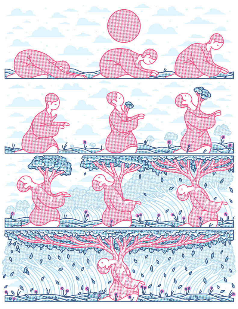 A sneak peak at a new comic from illustrator and comic book artist Evan M. Cohen (previously featured here). “Energy” explores themes of transition and rising above the hardships of today toward the hope of something better in the future. The comic will be available at evanmcohen.bigcartel.com soon!