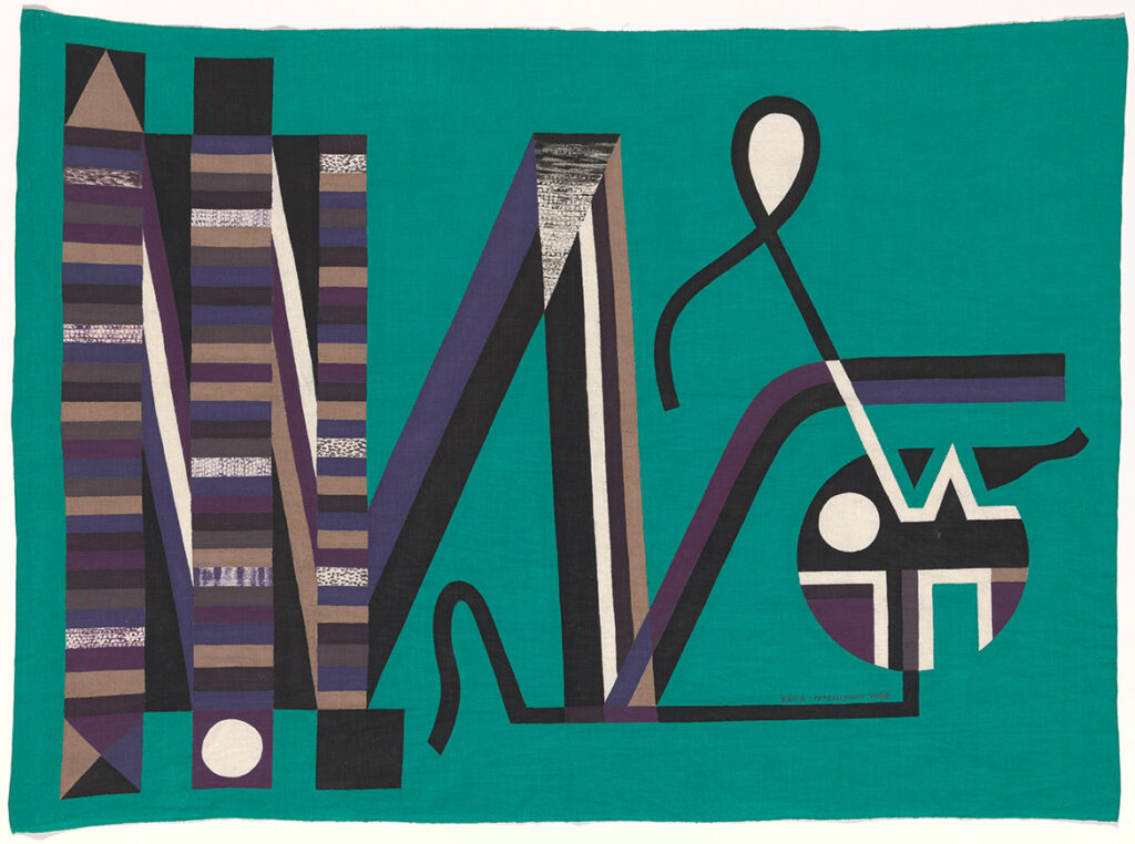 For all McGilchrist’s fluid tactics, Photographic machine 1968 is a keenly resolved painting, with a clear design sensibility owing to an economic use of colour, line and pattern. Her repeating bars — and use of clean, straight lines in general — makes a skilful contrast against the sparing use of curves that denote two arms and a head engaged in the choreography of taking a photograph. In this balance of abstraction and representation, formal clarity and colour harmonies, Photographic machine has something in common with a particular European modernist sensibility, as found in the wit of Sophie Taeuber-Arp’s earlier take on Dadaism.