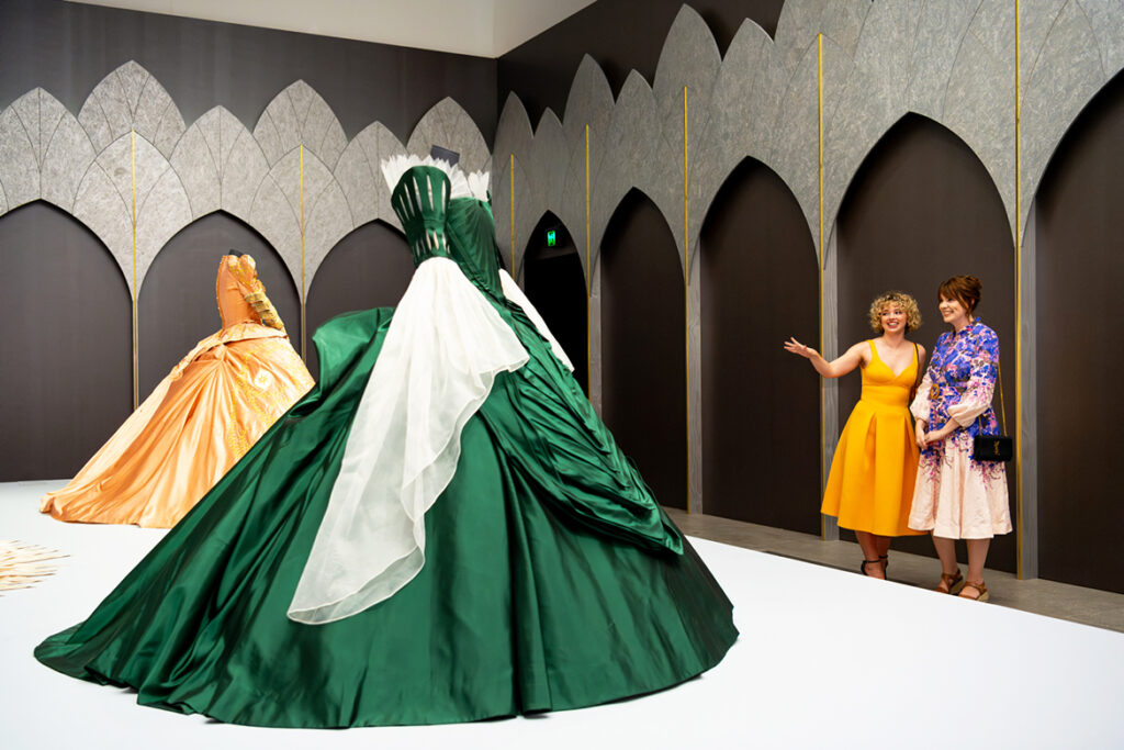 Travel with us in our weekly series through each room and theme of the ‘Fairy Tales’ exhibition at Brisbane’s Gallery of Modern Art (GOMA) as we focus on the stunning costumes from Mirror Mirror (2012) on display in Australia for the first time.