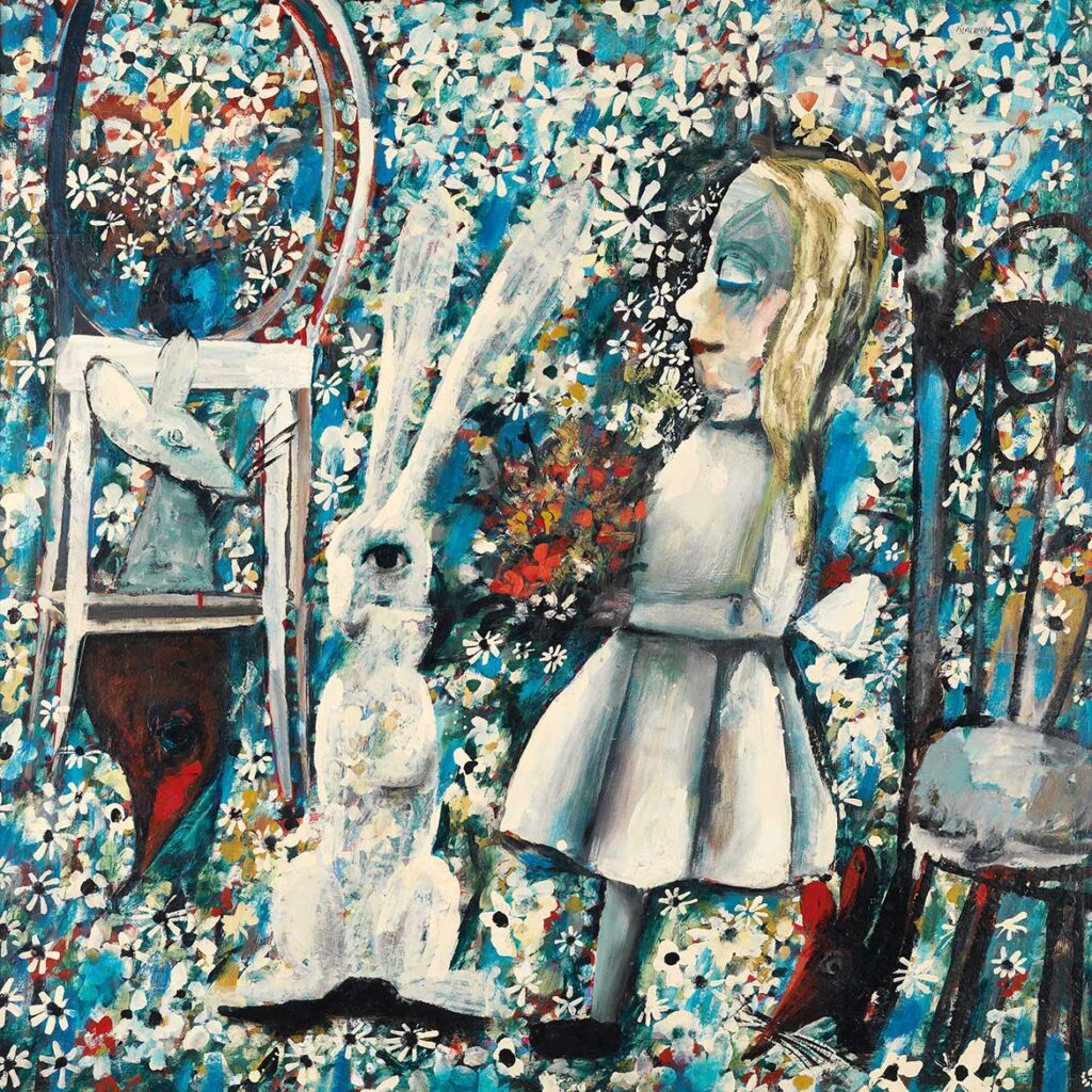 Now over 150 years old, Lewis Carroll’s Alice’s Adventures in Wonderland continues to capture the imagination across artforms from fine art to performance and film. In the 2010 film Alice in Wonderland, directed by Tim Burton, we see Alice all grown up. In this rendition of the tale, she is now 19 years old and on the cusp of an engagement when she follows the White Rabbit down the rabbit hole. While still disorientated by her plunge into a new world, Burton’s Alice is more assured than the young child of Carroll’s book, and while personal growth and self-discovery are still part of the journey, Alice’s tale is now one of an empowered and independent heroine. Burton is known for his darkly whimsical directorial style and celebrated for his many films that subvert traditional fairy-tale tropes by offering a macabre spin on ideas of love, marriage and convention.