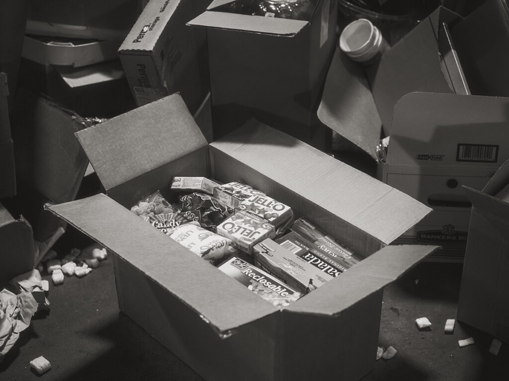 Amidst piles of battered furniture, unread books, stockpiled toilet paper, and expired medications, Brandon documents the contemporary rituals of death as he watches his father physically grapple with his grandmother’s belongings. While personal possessions are usually passed down through the family with a sense of reverence, the project confronts us with a reality where no such feelings are found. “If we were looking for significance in those sealed boxes,” Brandon states, “we found only junk.” And yet, despite the lack of expected sentimentality, Brandon and Lowell do find is a sense of connection and catharsis — forging a deeper bond as father and son, and opening up a dialogue around legacies of mental illness, abandonment, and the remedial power of love.