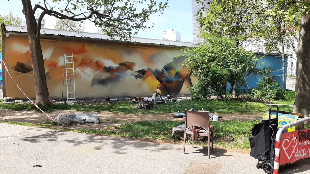 Street artist Pener just finished his latest mural entitled “Fire And Ice” in Vienna, Austria. Pener has been one of Poland’s talented emerging artists working in abstract and deconstructive style.
