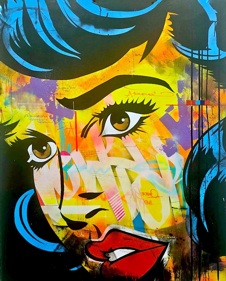 From the “Graffiti Pop Art Series,” mixed media on wood panel