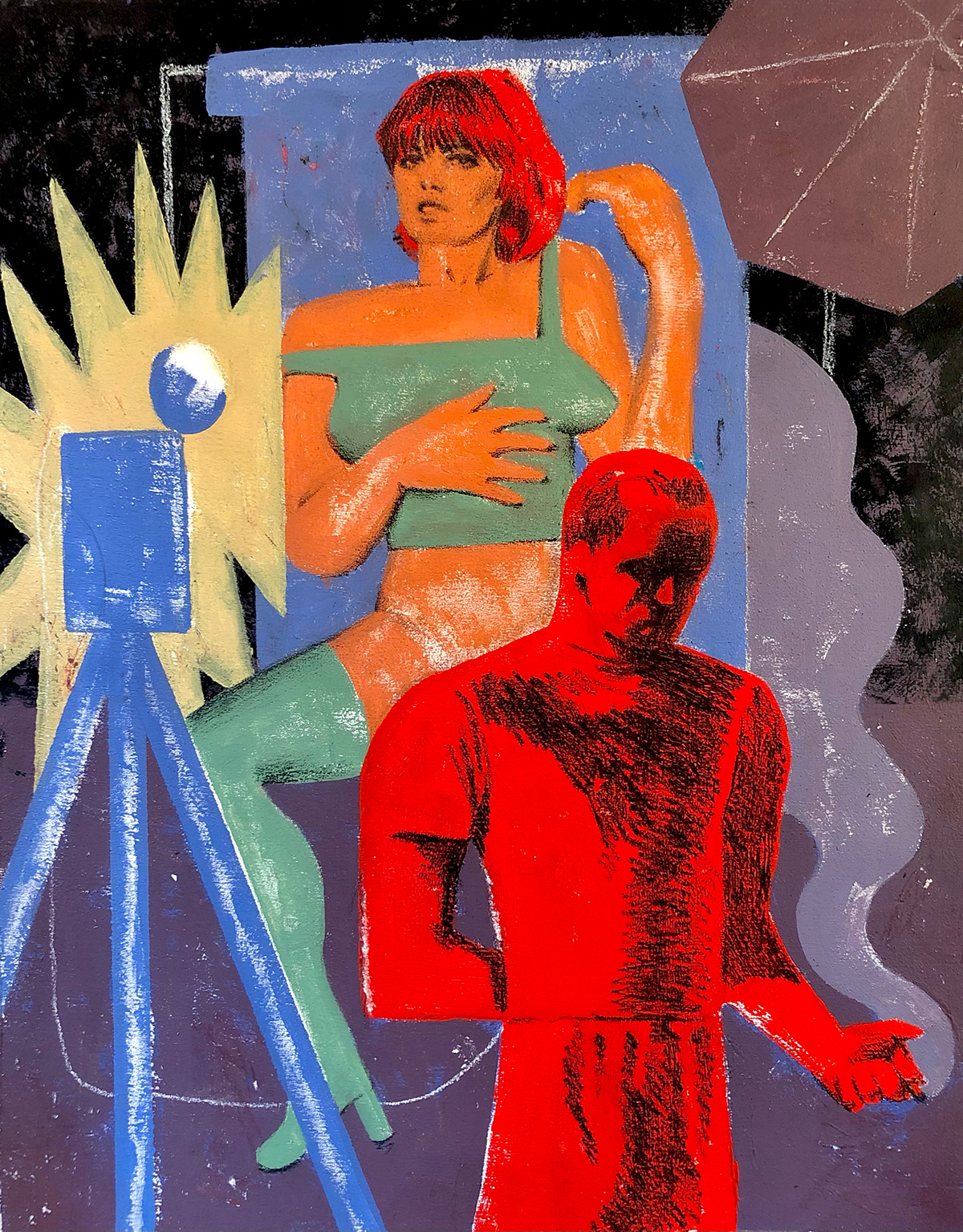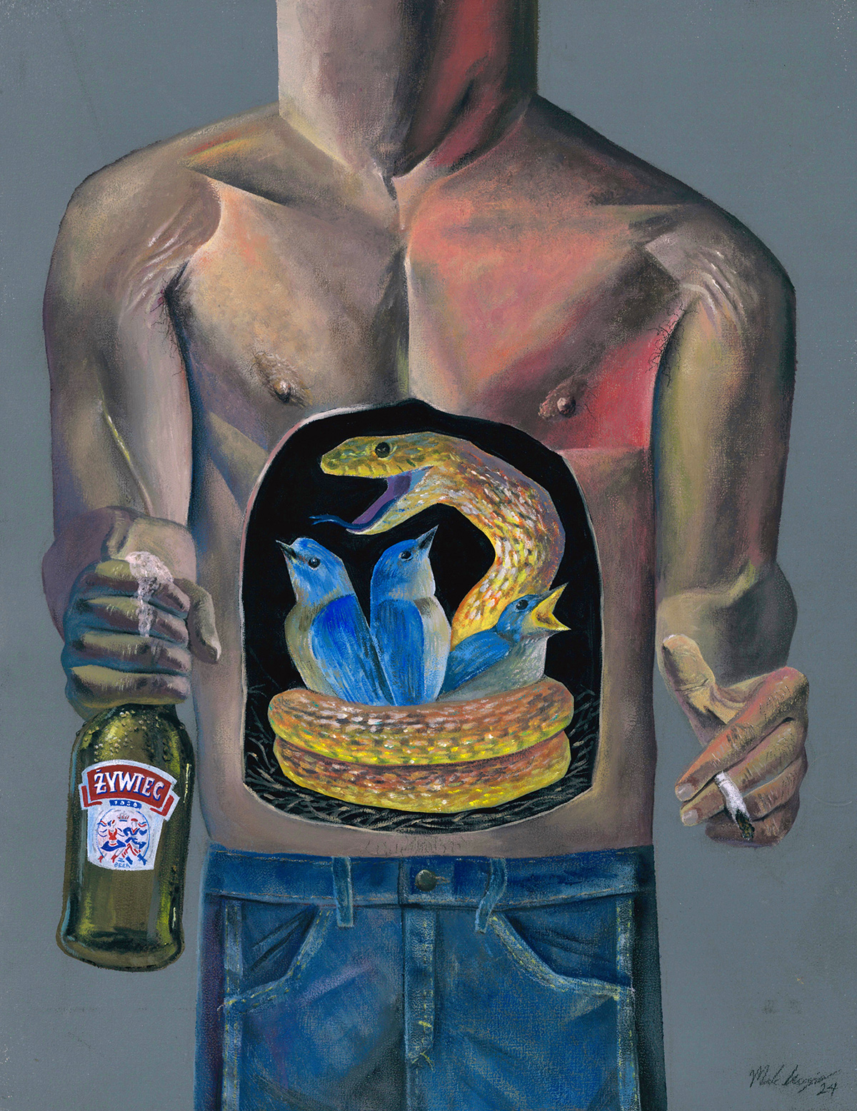 A selection of work by Toronto-based illustrator Mark Krzepis. Of mixed Filipino and Polish descent, Krzepis is a recent graduate of Ontario College of Art & Design University. He has illustrated cover art for Toronto artists such as BADBADNOTGOOD and Charlotte Day Wilson. After facing a house fire in 2022, Krzepis has focused his work towards the tactility and precariousness of reality. Inspired by literature, music, art history, and the absurd, he draws upon themes of human nature relevant in both fine art and lowbrow illustration.