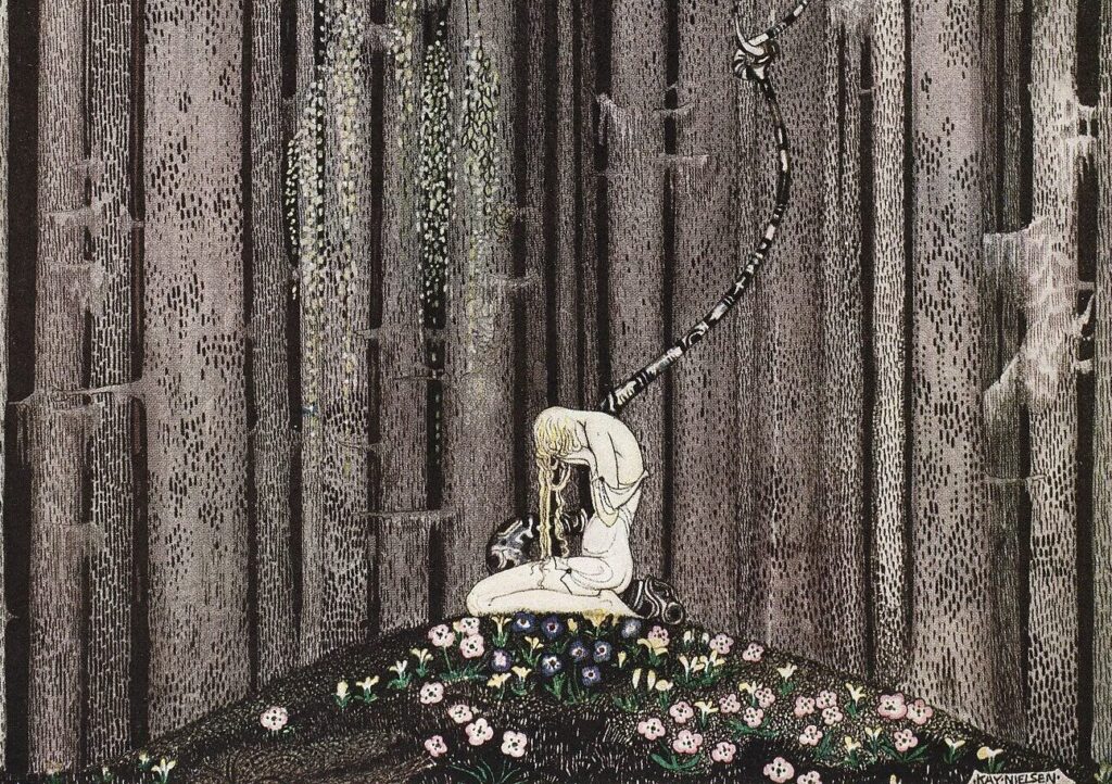 One of the hallmarks of Nielsen’s style is the emphasis on the setting over the characters, creating a truly immersive experience for the viewer. What sets him apart from his contemporaries, such as Arthur Rackham and the Robinson brothers, is the diversity of the cultural influences he draws upon in his works. These include Celtic mythology, Persian miniature painting, Japanese ukiyo-e prints, and Western European illustration.