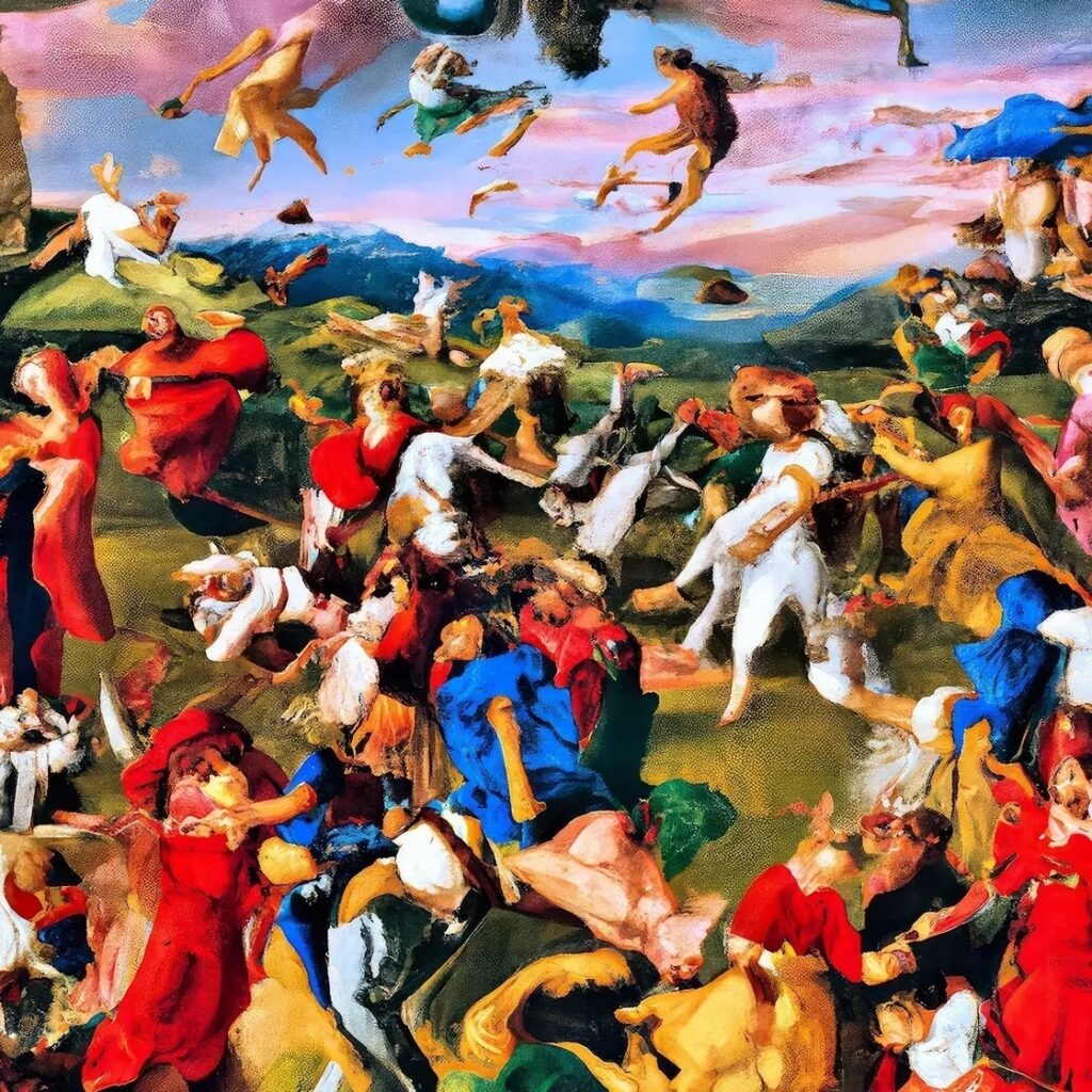 I see it as a language that should not be immediately intelligible. If you can understand it straight away, it is not art but propaganda. Because art is a product of human consciousness, and we don’t really understand what human consciousness is or what exactly makes us human. I see what I do as a sort of cognitive alchemy, a sort of rationalised rite to understand who I am and, by extension, who we all are as a species. AI, being a non-human “intelligence” (note the inverted commas) that is conversant with the entire compendium of human activity throughout history, is the perfect assistant to distil the rarefied materials our feverish dreams and nightmares as a species are made of. In short, I am talking to myself–which is the ultimate goal, and the most universal: only by understanding oneself might one understand the world and humanity itself, and truly communicate with others.