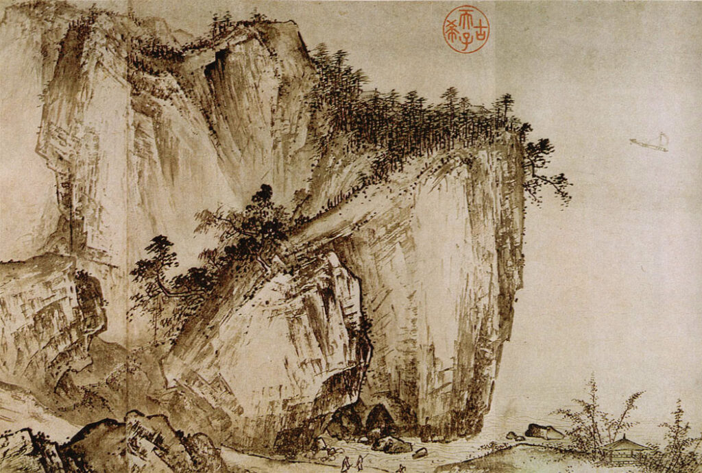 Together with Xia Gui, Ma Yuan is often mentioned in Chinese criticism as epitomizing the highest level of painting at the Southern Song (1127–1279) Academy centered in Lin’an (within the area of modern Hangzhou). There’s no clear account of his life. He appears to have served as a painter in attendance under three emperors. He was a mature and celebrated painter by 1200. We know this because in that year, Emperor Ning-zong’s favorite concubine and later empress, Yang Mei-tzu, often added inscriptions and seals to Ma Yuan’s paintings.