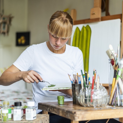 Marianne graduated with a BA in Architecture & Spatial Design with Honors at Central St. Martins in London, England. The Artspace Artist Direct artist’s paintings have been exhibited in Amsterdam, New York, London, and Italy and have been featured in newspapers and magazines around the world including the New York Times, Vogue Living NL, Saatchi Art Catalogue and BOOOOOOM!. We caught up with her and asked her a few questions about how, why, when and where she does what she does.