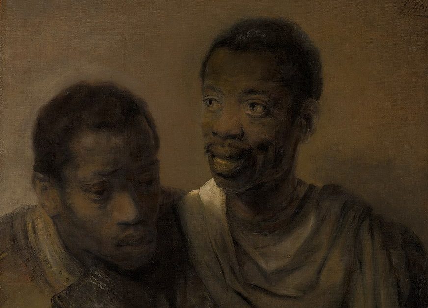 Rembrandt painted African sitters (probably neighbors) on several occasions, but The Two African Men are considered his most important depiction of Black people. It is important to stress that this work is not a portrait but a tronie, a genre developed exclusively in Dutch and Flemish art of the 16th and 17th centuries, serving as a bust-length physiognomical study of a “typical” human character. This tronie, however, is not so typical for this genre. As mentioned in the introduction, the Two African Men reveal some traces of individuality, but they are placed in a context of a study.