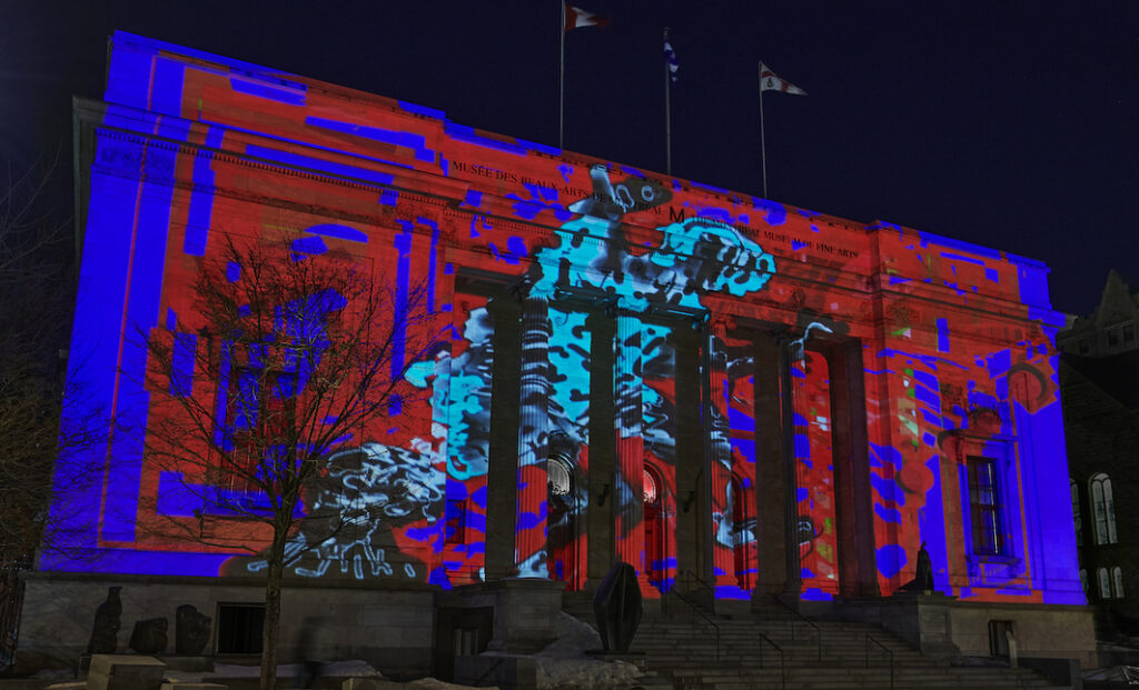 Nalini Malani, Ballad of a Woman, 2023, video projection, color, silent, 4 minutes 58 seconds (looped). Installation view, Montreal Museum of Fine Arts. Photo: Jean-François Brière.