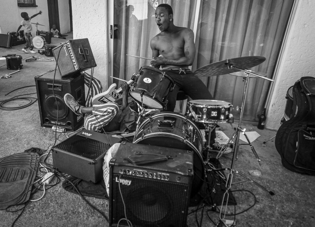 “Punk Rock and skateboarding is keeping the youth inspired and unafraid of pursuing their dreams, in an environment that is not receptive to ‘white music and white sports’, without public scrutiny or fear of being stereotyped. This movement is something that I have documented through the lives of the gatekeepers of the punk movement in Soweto. These unlikely role models from the band “T.C.I.Y.F” have influenced their community and outsiders, bridging borders through what many may deem as anti-establishment and non conformative forms of self expression, similar to the rebellious nature of great South African artists such as, Brenda Fassie, Hugh Masekela and Lucky Dube, who rebelled against the Apartheid regime through their music.”