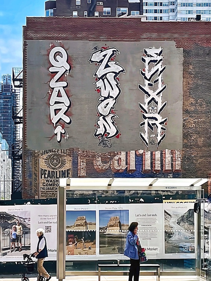 For our ongoing series of unsanctioned public art, we are back to Manhattan. Featured above are the prolific Qzar, Zwon and EXR. What follows are several more images of illicit artworks captured on the streets of Manhattan.