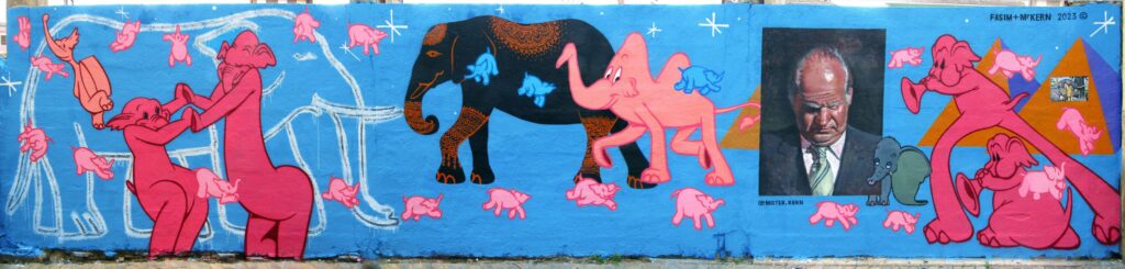“The Delirium of Juan Carlos I” mural, created by artists FASIM and MR. KERN, is a captivating masterpiece that delves into the complex psyche of Juan Carlos I, the former King of Spain. Fasim and Mr. Ker5n’s collaborative work offers a thought-provoking and visually stunning commentary on the historical and personal dimensions of Juan Carlos I’s reign.