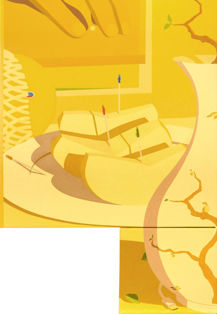 A new series of paintings integrating personal stories, memories, and cultural identity by Los Angeles-based artist Adrian Kay Wong (previously featured here). In “Upon a Golden Mountain” Wong depicts subtle narratives into the seemingly incidental moments of the everyday. Navigating the boundaries between abstraction and representation, artifice and reality, ethereal and visceral, Wong’s images speak to the dualities that coexist in our daily lives, such as connection and isolation, belonging and solitude, love and loss.