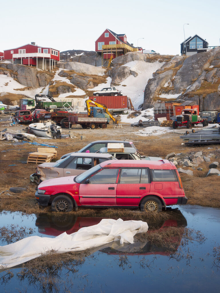 A series chronicling seasonal transitions in the arctic by photographer Emile Holba. Compared to lower-latitude regions, time feels compressed in the Arctic, especially the duration of spring, summer, and autumn compared to winter, which dominates. For the last two years, Holba has been working in Ilulissat, Kalaallit Nunaat (Greenland), a town that has adapted to the dark months of freezing temperatures and exemplifies sustained urban Arctic life with a population of just 4,000 residents. While Holba has gotten used to navigating the town during winter, a time when substantial snow cover conceals key town infrastructure, “When The Snow Leaves Town” reflects a different kind of transition: